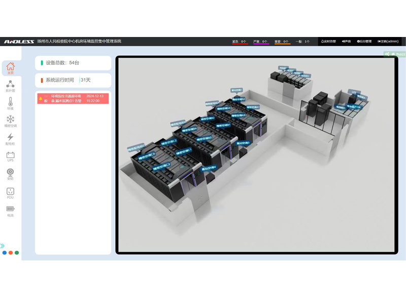 近期有幸為江蘇省某市檢察院提供三套安德力士品牌微模塊機房設備,涉及系統有:UPS不間斷電源、精密空調、機柜、配電、動力環境監控等系統;涉及主要設備有:UPS主機(30KVA、40KVA、300KVA)、鉛酸蓄電池(100AH64節、200AH128節、250AH320節)、精密空調(行級25KW12臺、基站12.5KW4臺)、機柜51套,現已全部安裝調試完成。